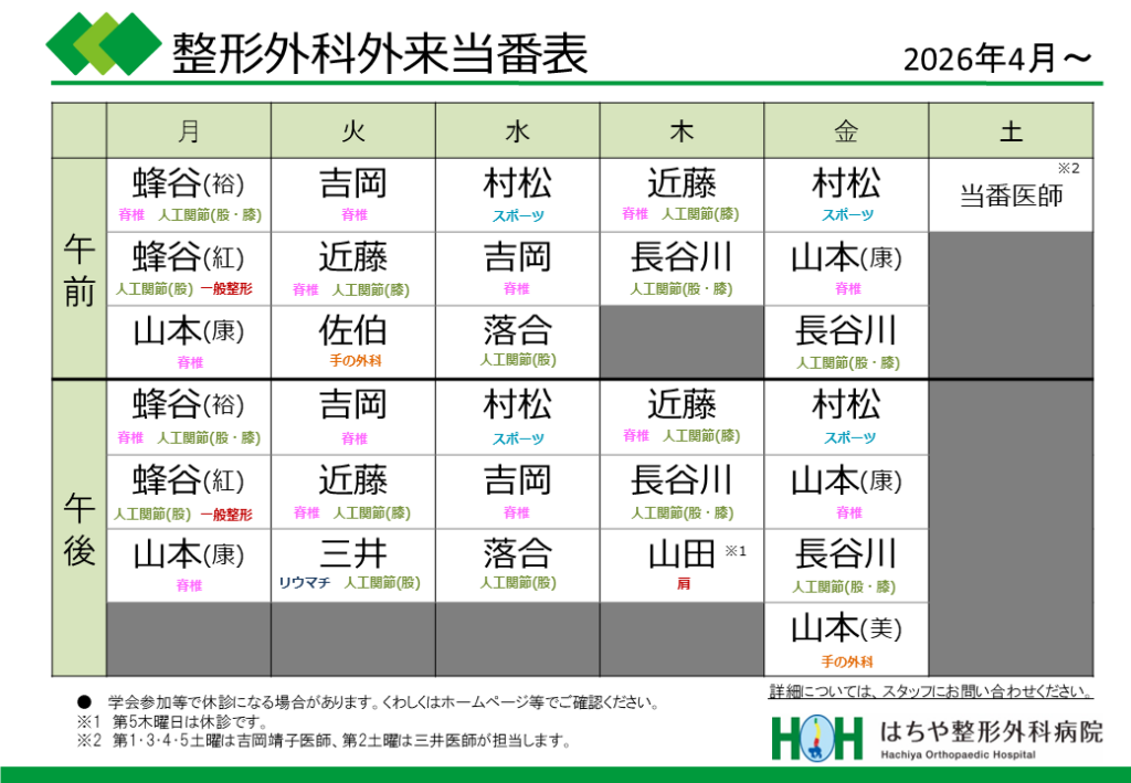 2026年4月より、外来当番が一部変更になります。